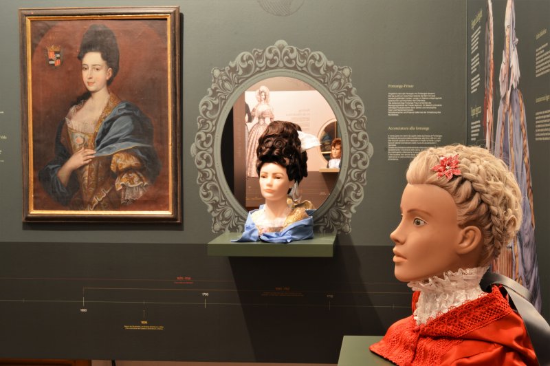 Gli abiti ci accompagnano nel corso della vita. La loro funzione è quella di coprire e proteggere la persona. Nonostante la foggia e il taglio si adeguino ai dettami della moda, essi rimangono pur sempre un mezzo di comunicazione e uno specchio della società. L’abbigliamento dei nobili era il simbolo evidente che ne identificava lo stato sociale e l’appartenenza ad una classe di rango elevato. Ciò valeva sia alla corte imperiale di Vienna che nella realtà rurale tirolese, sia nelle occasioni di festa che nella vita quotidiana. I gilè in seta del XVIII secolo, impreziositi da ricami, erano indice di ricchezza e di appartenenza ad un ceto sociale superiore. Le uniformi del XIX secolo, dai colori sgargianti, erano simbolo di appartenenza alla nobiltà tirolese e alla casta dei funzionari della corte imperiale asburgica. Anche la posizione della donna nella società era messa in risalto da un adeguato guardaroba di abiti in seta e da preziosi gioielli.